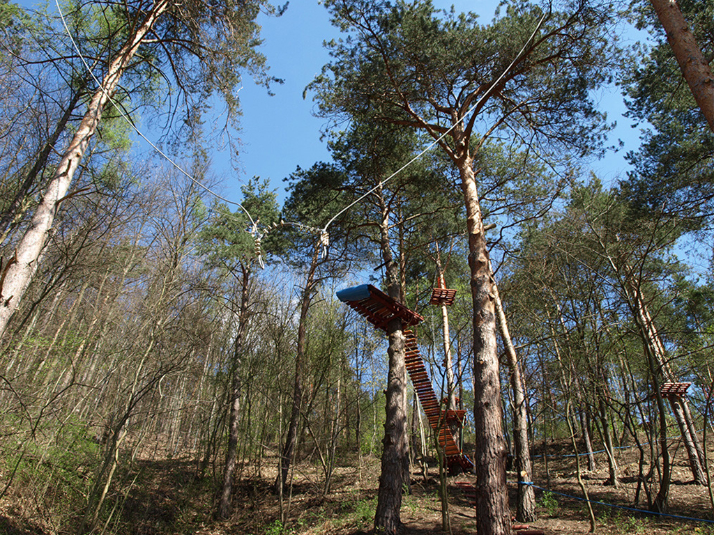 Jego powierzchnia to ponad 35 tysięcy metrów kwadratowych. Naturalne uwarunkowanie terenu dało nam możliwość utworzenia 12 niepowtarzalnych tras o różnym stopniu trudności i różnorodnych przeszkodach – ścianki wspinaczkowe, powietrzna deskorolka, skoki Tarzana, ruchome pomosty, sieci, tyrolka i wiele innych, to mnóstwo mocnych wrażeń!
